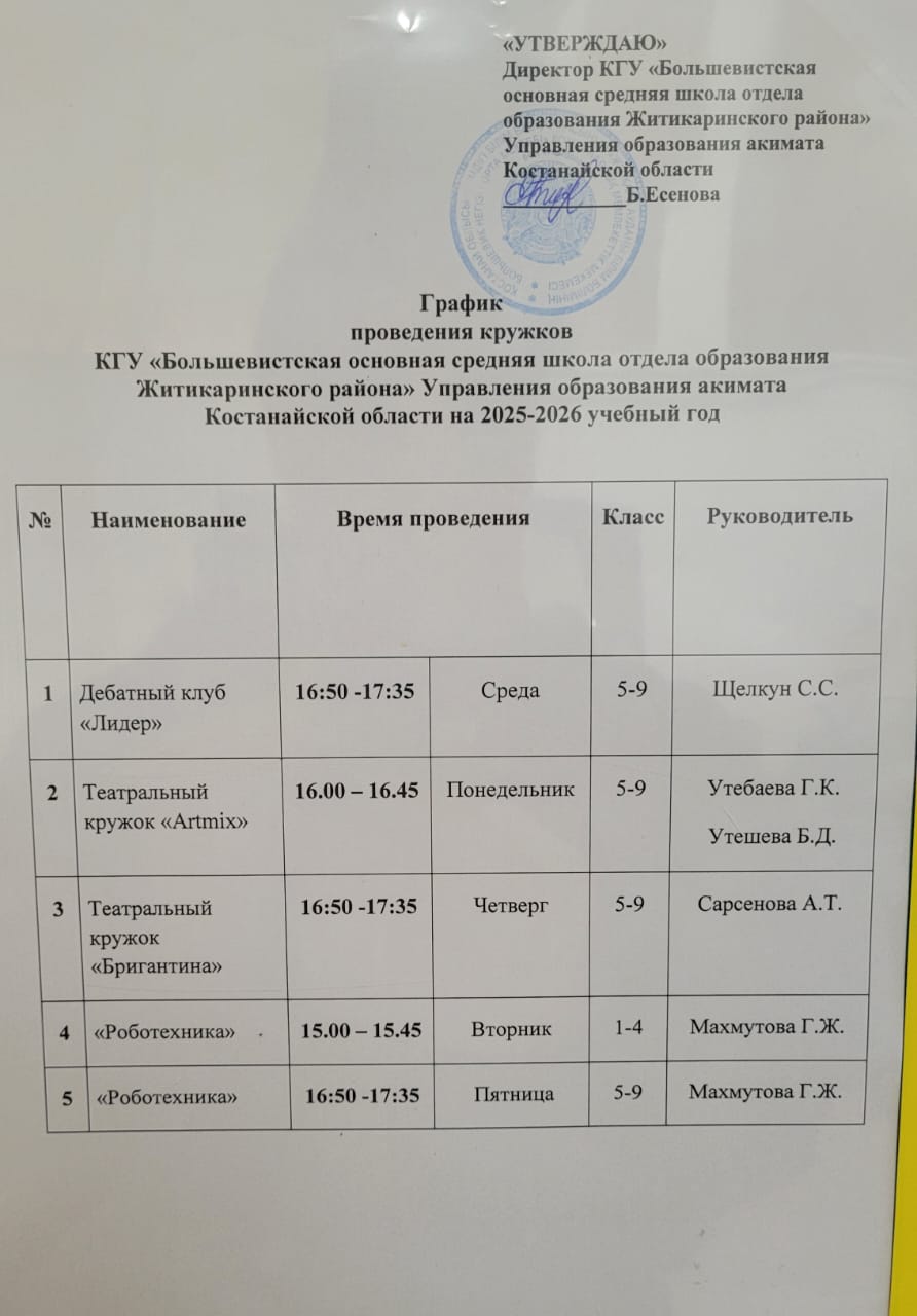 График кружков на 2025-2026 учебный год