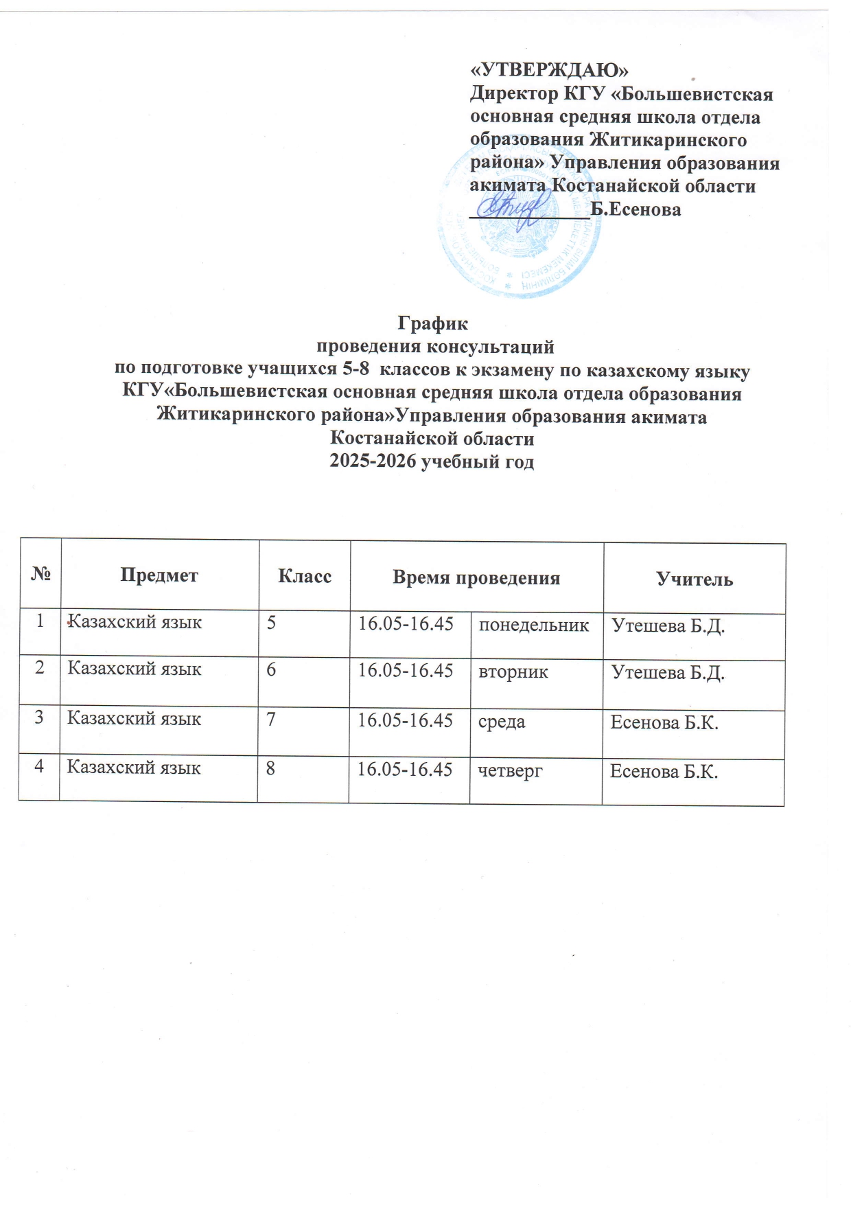 График проведения консультаций для подготовки учащихся 5-8 классов к промежуточной аттестации 2025-2026 учебный год