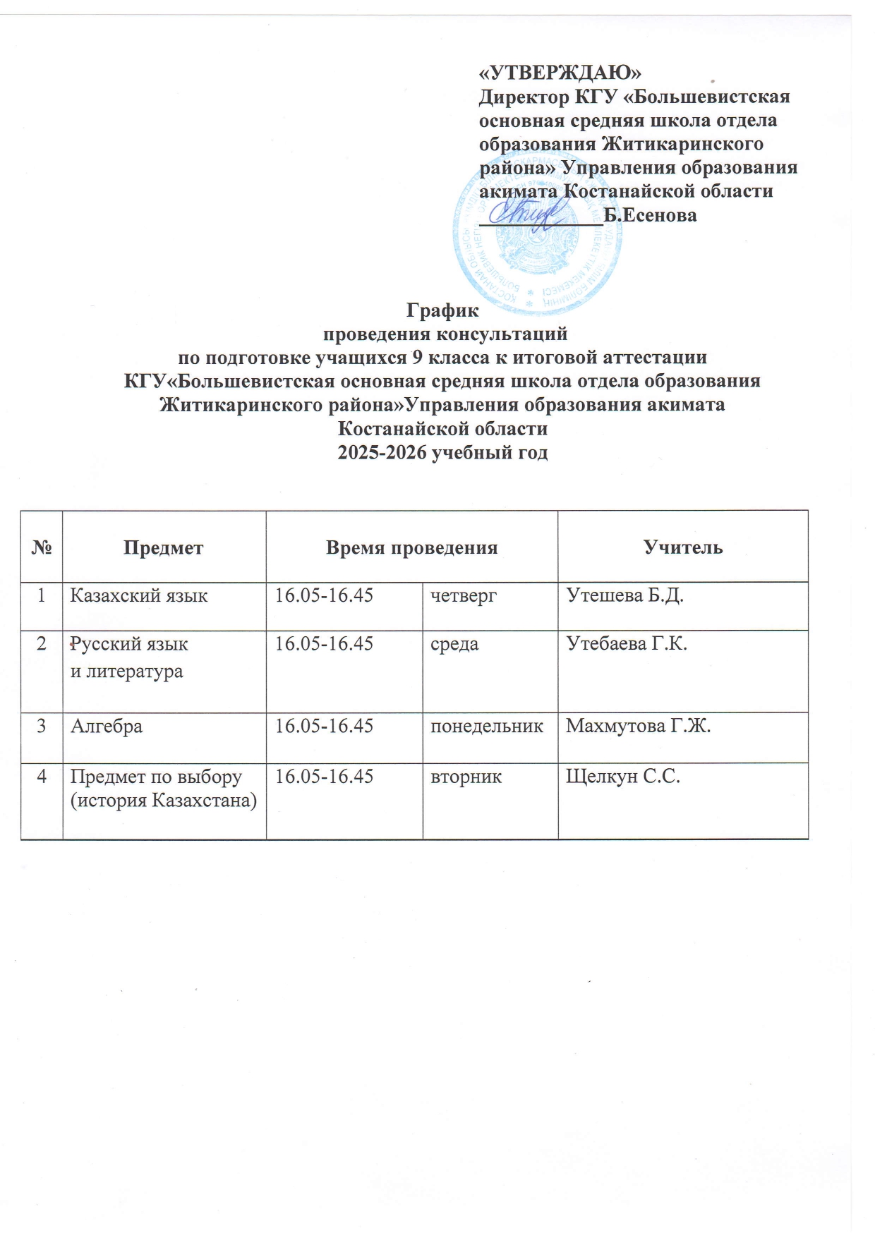 КГУ «Большевистская основная средняя школа отдела образования Житикаринского района» Управления образования акимата Костанайской области |