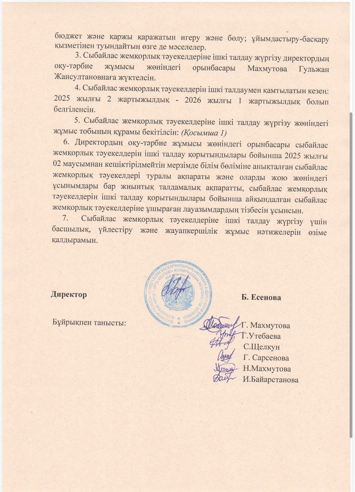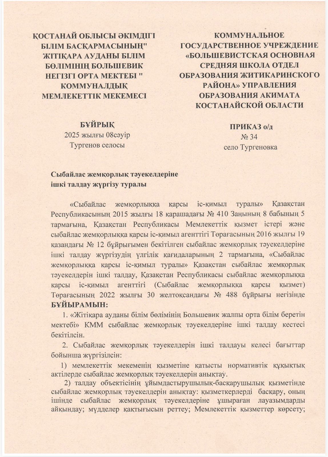 Қостанай облысы әкімдігі білім басқармасының «Жітіқара ауданының білім бөлімінің Большевик негізгі орта мектебі» КММ-де сыбайлас жемқорлық тәуекелдеріне ішкі талдау жүргізуге дайындық басталды.Талдау кезеңі: 2025 жылдың 2-жартыжылдығы – 2026 жылдың 1-жартыжылдығы.